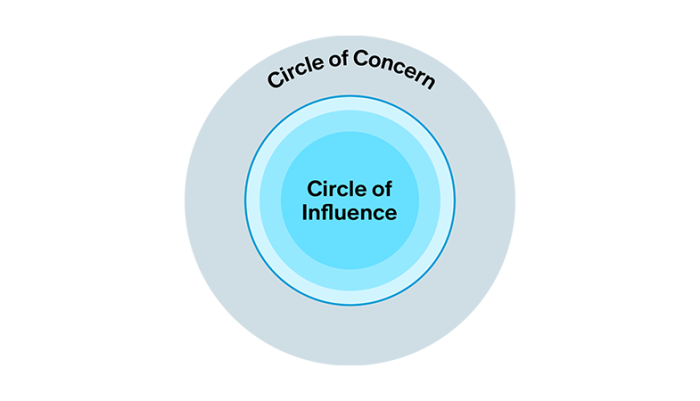 When we’re proactive, we focus our efforts on our Circle of Influence®. We work on the things we can do something about. This allows us to expand our influence over time and create more choices and opportunities. When we’re reactive, we get stuck focusing on our Circle of Concern™—on things over which we have little or no control.